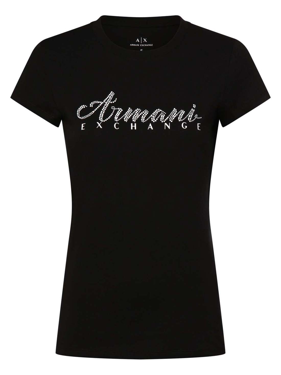 Стильное дополнение к любому образу из денима и чинос: футболка Armani Exchange с принтом лейбла и декоративными камнями. облегающий крой круглый вырез принт лейбла с декоративными камнями хлопок внешний материал 100% хлопок В размере S длина спинки - 61 см В размере S ширина талии - 39 см Рекомендации по уходу: ручная стирка; гладить при температуре не выше 110°С без пара; сушка в барабане невозможна; химчистка невозможна; Не отбеливать