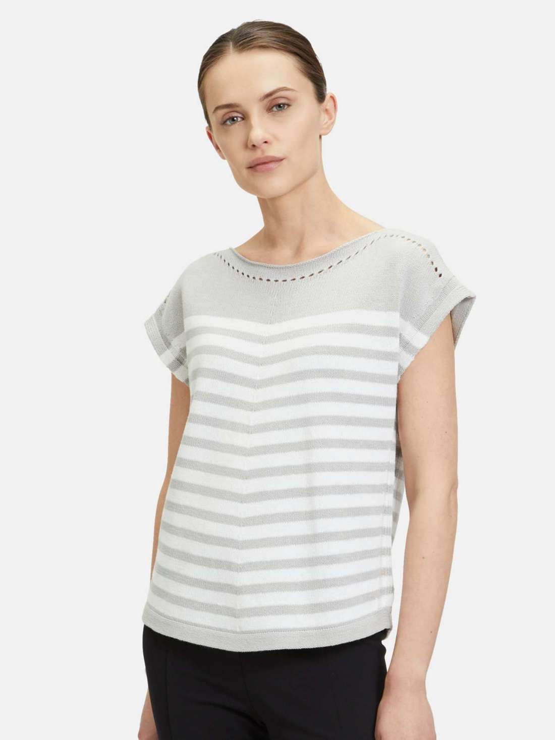 Cool und lässig präsentiert sich dieses Strick-Top von So Cosy mit Ringelmuster. Gerade geschnitten und ohne Ärmel bietet es einen entspannten Look. Der U-Boot-Ausschnitt verleiht eine moderne Note. Perfekt für einen lässigen, casual Style mit Streifenmuster. Passform: Gerade Ärmelform: Ohne Arm Ausschnittform: U-Boot-Ausschnitt Hauptbesonderheit: Ringel Unser Model ist 175cm groß und trägt Größe 36 Obermaterial 60% Baumwolle|40% Polyacryl Care information: spezialschonwaschgang 30°c; mäßig heiß bügeln bei max. 150°c; trocknen auf der wäschleine; nassreinigung möglich; nicht bleichen