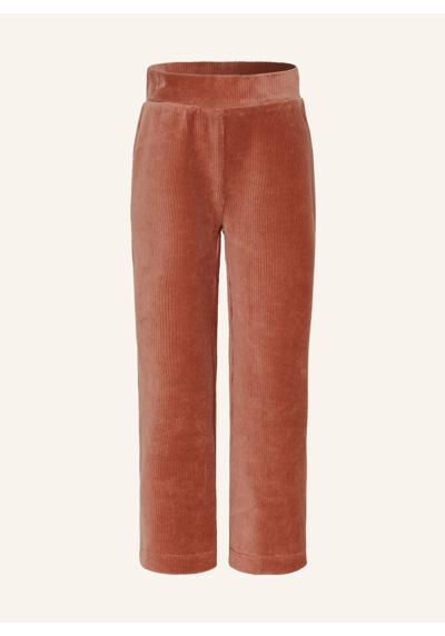 Beschreibung Für Mädchen Passform laut Hersteller: Wide Leg Fit Gerades, weites Bein Zip-Fly-Verschluss 4-Pocket-Style Seitliche Cargotaschen Optische Sitzfalten Used-Waschung Elastische Baumwollqualität
