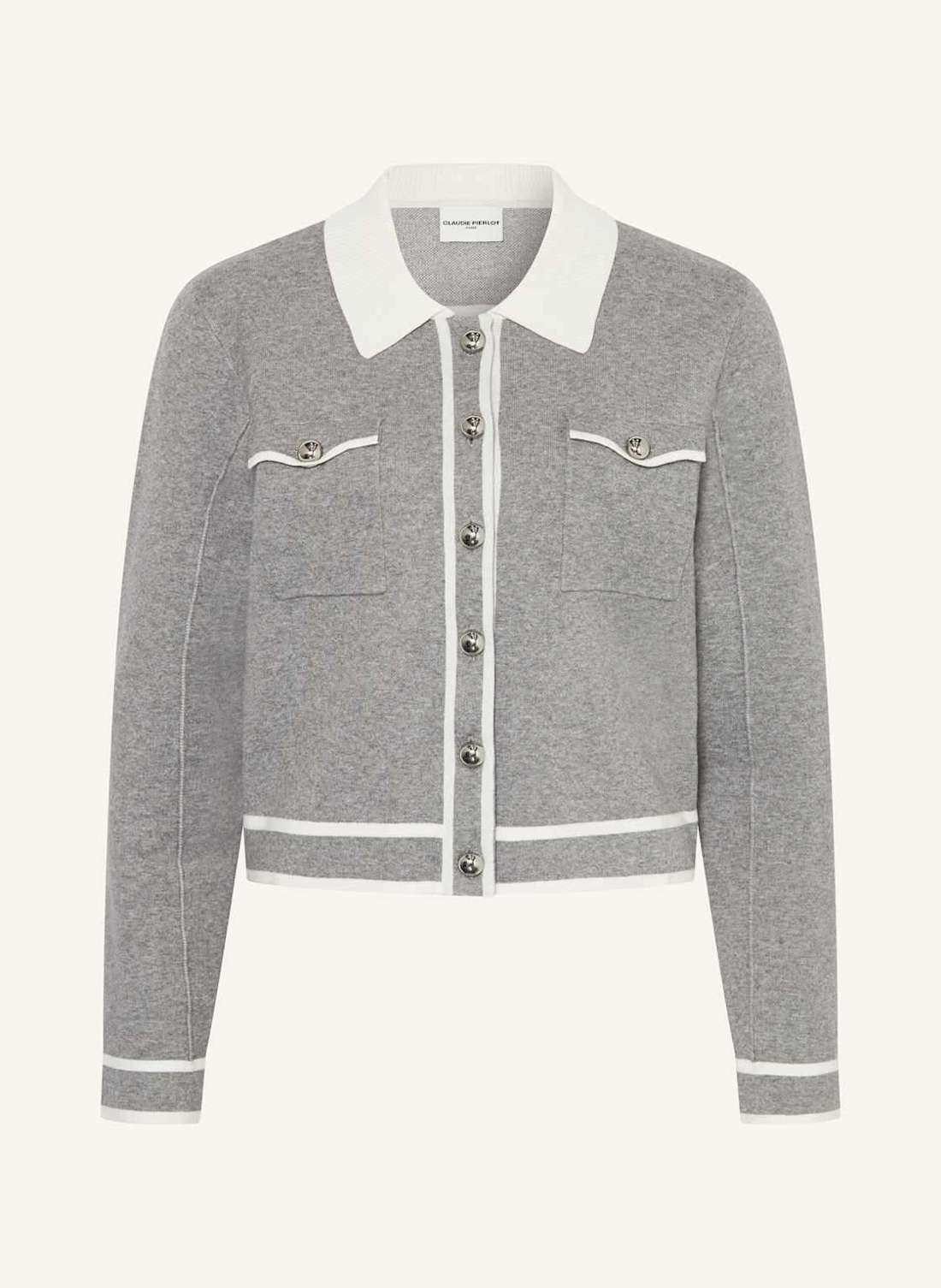 Beschreibung Glattstrick Gerader Schnitt Gerippter Umlegekragen Schließt mit Knopfleiste Aufgesetzte Pattentaschen mit Knopf Elastische Qualität