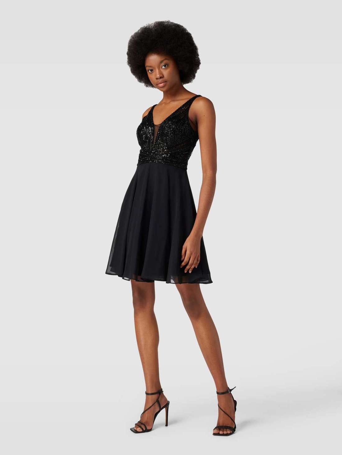 Hauptmaterial 1: Polyester 100% Damen Cocktailkleid von Hey Kyla Taillierte Passform Minikleid V-Ausschnitt Semitransparent Pailletten- und Perlenbesatz Raffungen Reißverschluss auf der Rückseite Rückenlänge bei Größe 36: 60 cm Brustweite bei Größe 36: 35 cm Pflegehinweise: eingeschränkte chemische reinigung: kohlenwasserstoffe erlaubt. begrenzung der feuchtigkeitszugabe und/oder der mechanischen beanspruchung und/oder der temperatur.; nicht waschen; nicht bleichen; kein trockner; nicht heiß bügeln, vorsicht beim bügeln mit dampf