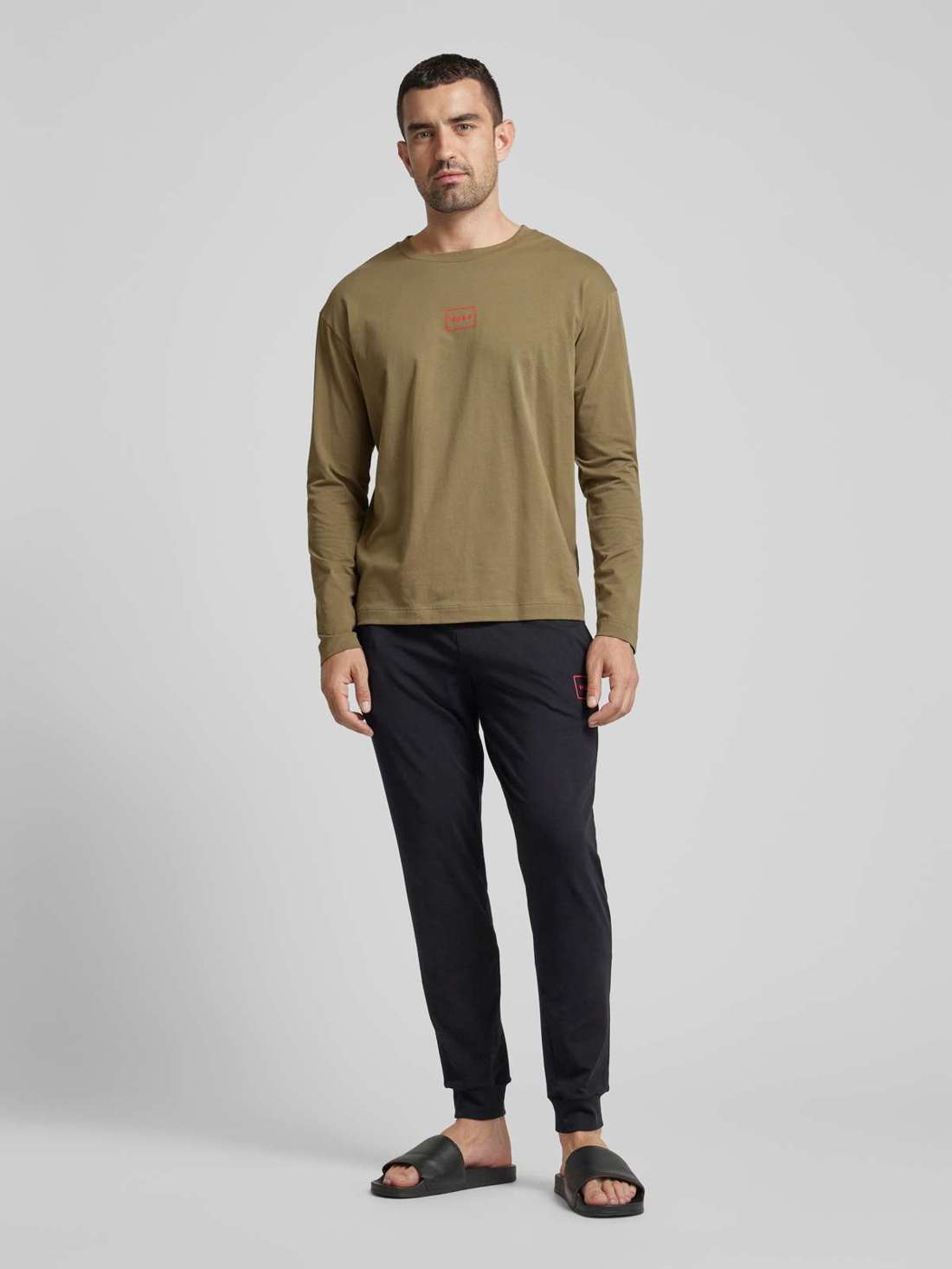 Hauptmaterial 1: Baumwolle 95%, Elasthan 5% Herren Longsleeve von HUGO Baumwoll-Elasthan-Mix Gerader Schnitt Modell 'Laze' Rundhalsausschnitt Label-Print Rückenlänge bei Größe M: 71 cm Pflegehinweise: nicht bleichen; keine chemische reinigung; trocknen mit reduzierter thermischer beanspruchung; nicht heiß bügeln, vorsicht beim bügeln mit dampf; normalwaschgang 40° Das Model ist 187cm groß und trägt Größe M