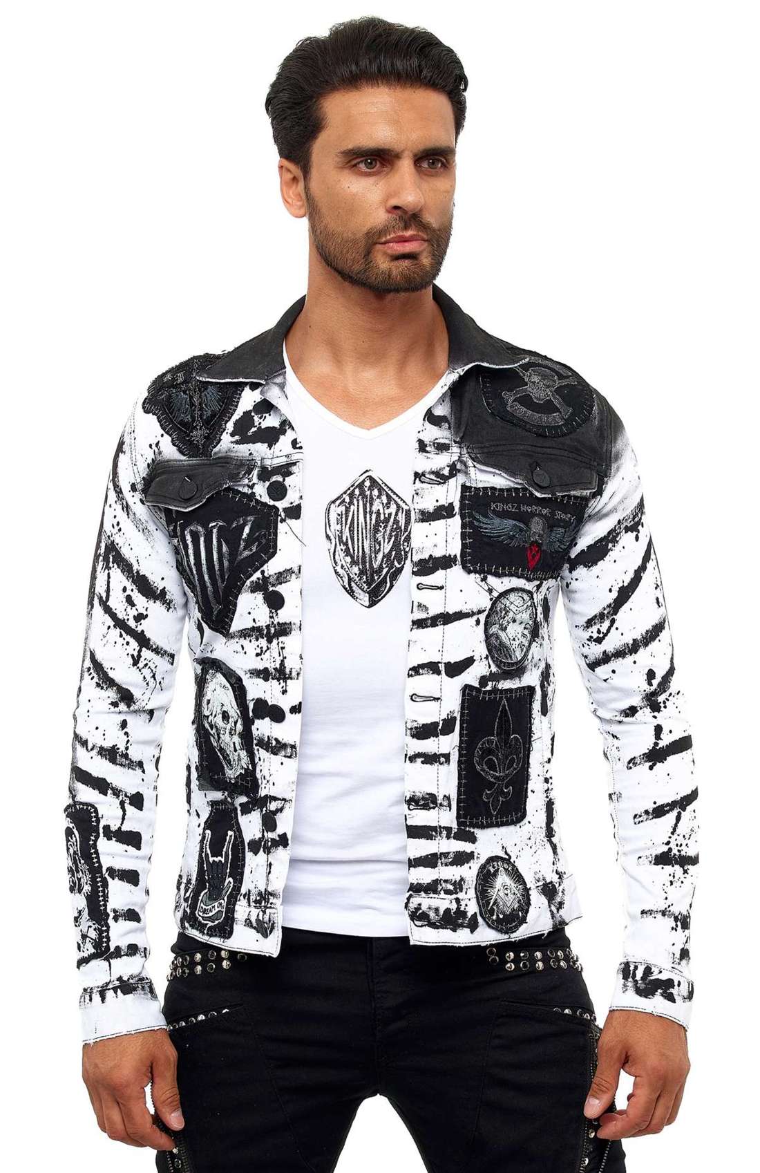 Als echter Modeexperte kommst du um diese Jeans-Jacke von KINGZ nicht herum. Diese coole Jeansjacke mit Umlegekragen, Knopfverschluss und den Patches überzeugt durch sein einzigartiges Aussehen. Ein weiteres Highlight ist die Batik-Waschung, die dieser Jacke im Ganzen ein authentisches Charisma verleiht. Dabei dürfen die zwei Eingrifftaschen und die geknöpften Brusttaschen nicht fehlen. Durch die hochelastische Qualität des Materials erhält diese Jeansjacke ein besonders angenehmes Tragegefühl. In der Kombi mit der KINGZ Jeans 1505 in White-Black ein absoluter Eyecatcher.