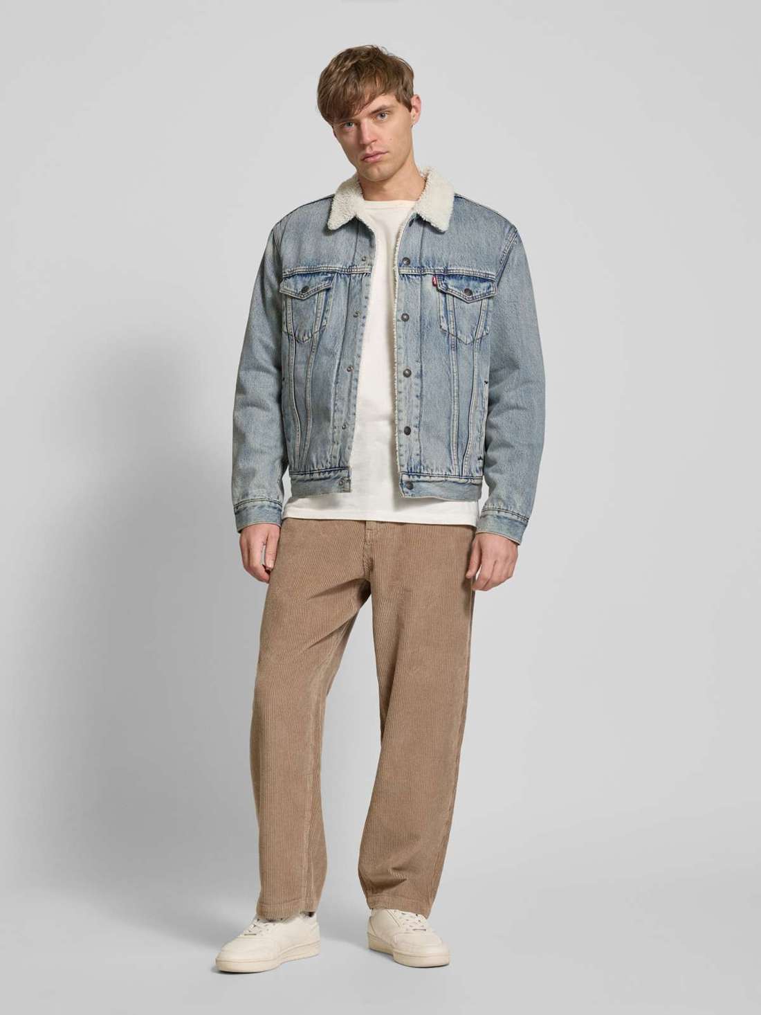 Hauptmaterial 1: Polyester 100% Herren Jeansjacke von Levi's® Regular Fit Label-Detail Brusttaschen Umlegekragen Teddyfell-Besatz Ziernähte Rückenlänge bei Größe M: 64 cm Schulterbreite bei Größe M: 46 cm Brustweite bei Größe M: 43 cm Ärmellänge bei Größe M: 65 cm Pflegehinweise: schonwaschgang 30°; nicht bleichen; trocknen mit reduzierter thermischer beanspruchung; mäßig heiß bügeln; chemische reinigung: perchlorethylen, kohlenwasserstoffe erlaubt. Das Model ist 184cm groß und trägt Größe M