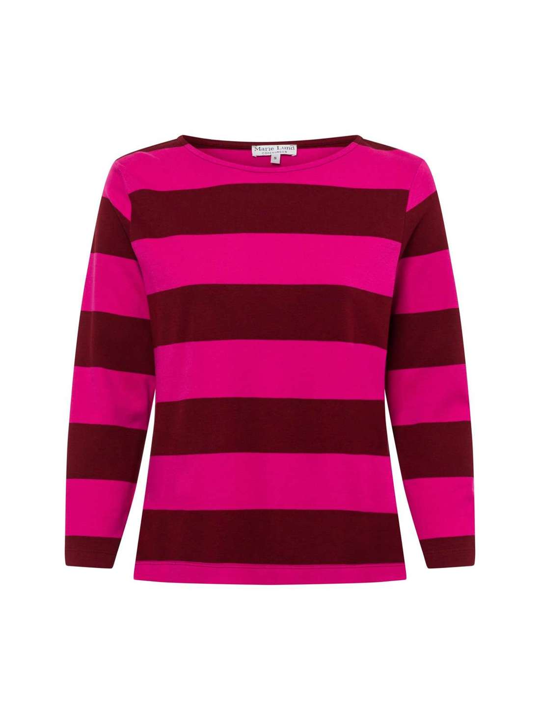 Удобная рубашка с модными полосками, рубашка от Marie Lund вписывается в повседневный гардероб как несложная базовая вещь. нормальный крой круглый вырез Рукава 3/4 разрезы по бокам хлопковый трикотаж Внешний материал 100% хлопок В размере S длина по спинке - 61 см В размере S ширина талии - 47 см Информация по уходу: бережный цикл 30°C; гладить умеренно горячей при температуре не более 150°C; сушка на бельевой веревке; химчистка (перхлорэтиленом); Не отбеливать