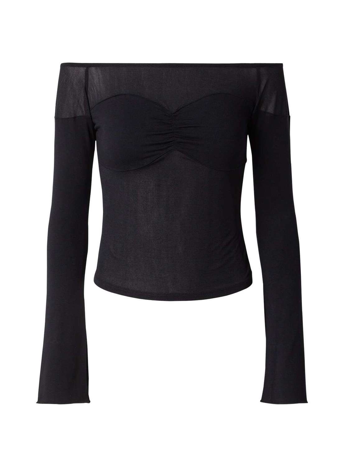 Дизайн и дополнительные возможности: Однотонные цвета; Джерси; вырез «Кармен»; Драпированный/с рюшами; Прошитый край/край; Прямой подол; швы тон в тон; Мягкая на ощупь Размер и посадка: Длина рукава: Длинный рукав; Длина: Короткая стрижка; Посадка: приталенная Рост модели 1,76 м, размер S (международный) Материал и уход: Материал и уход: Материал 1: 95 % вискоза, 5 % эластан; Материал 2: 100% полиэстер – PES; Страна-производитель: Китай; Не сушить в сушильной машине; Химчистка перхлорэтиленом; Не гладить горячим; Не отбеливать; Легкая в уходе стирка при 30 °C