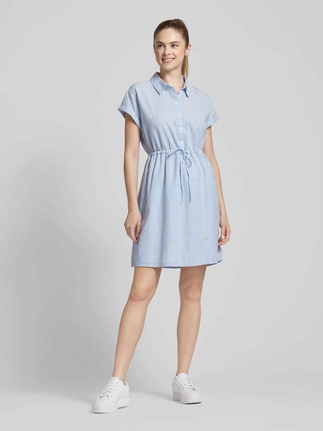 Основной материал 1: Вискоза 100% Женское платье-рубашка от TOM TAILOR Denim Чистая вискоза Индивидуальный крой Полосатый узор Отложной воротник Планка с пуговицами Завязывающийся пояс Длина по спинке для размера S: 85 см Ширина по груди для размера S: 40 см Инструкция по уходу: не отбеливать; нет сушилки; нет химчистки; гладить умеренно горячим; нормальный цикл стирки 30°