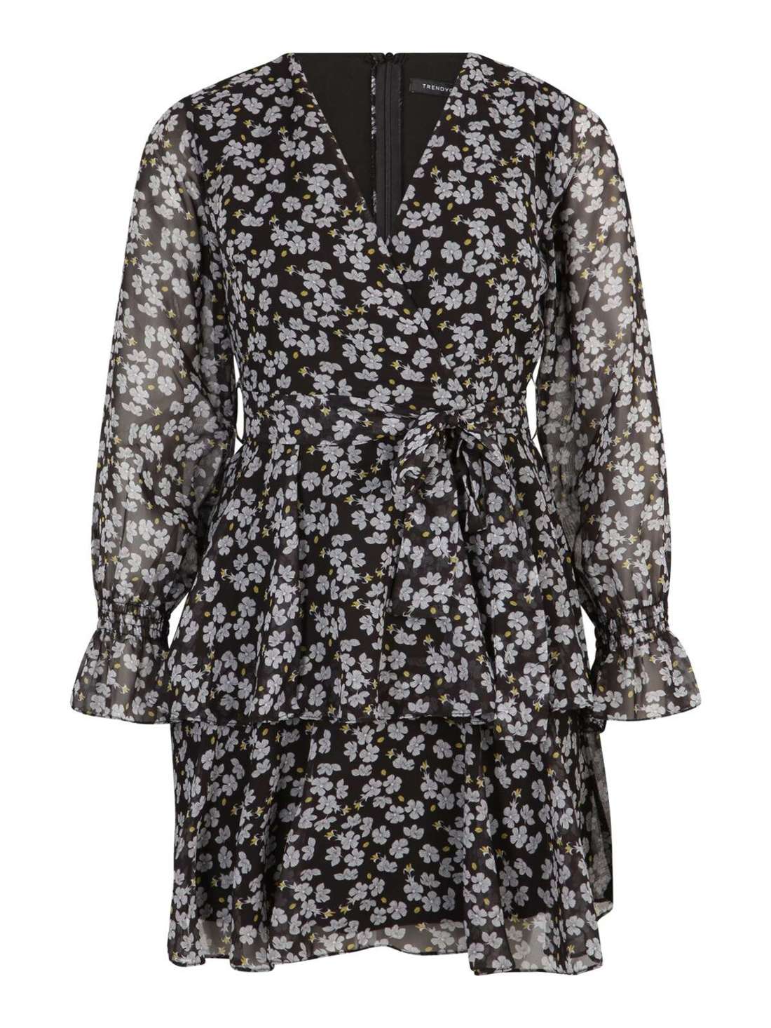 Design & Extras: Geblümt/Floral; V-Ausschnitt; Kragenlos; Volant; Drapiert/gerafft; Wickel-Design; Mit Unterkleid; Rücken-Reißverschluss; Taillengürtel; Leicht transparent; All-Over-Muster; Fließender Stoff; Reißverschluss Größe & Fit: Ärmellänge: Langarm; Länge: Kurz/Mini; Passform: Normale Passform Material & Pflege: Material & Pflege: Obermaterial: 100% Polyester - PES; Futter: 100% Polyester - PES; Nicht trocknergeeignet; Trockenreinigung mit Perchlorethylen; Nicht heiß bügeln; Nicht bleichen; 30 °C pflegeleichte Wäsche