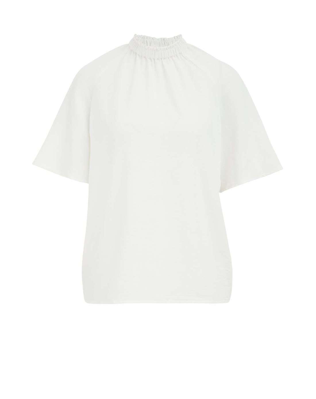 Дизайн и дополнительные возможности: Однотонные цвета; воротник-стойка; Драпированный/с рюшами; Блузка-рубашка Размеры: Длина рукава: половина рукава; Длина: Нормальная длина; Посадка: Свободная посадка Материал и уход: Материал и уход: Состав: 100 % полиэстер – PES (переработанный); Страна происхождения: Камбоджа